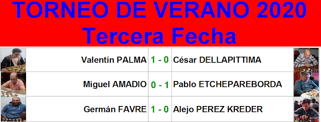 Valentín Palma derrotó con piezas Blancas a César Dellapittima al cumplirse la tercera fecha del Torneo de Verano que organiza el Club de Ajedrez Pigüé y continua solo al frente de las posiciones con puntaje ideal. La partida se definió en 50 movimientos de una Apertura Reti.