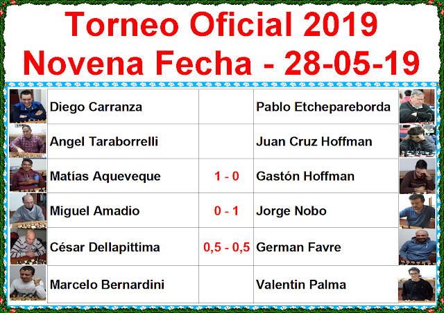 Este resultado fue aprovechado por César Dellapittima para darle alcance en las posiciones tras derrotar con piezas Blancas a Diego Carranza en 64 movimientos de una Defensa Francesa, Variante del Avance (C02), .